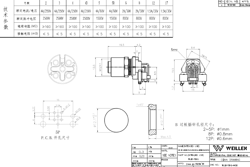 M12 5P A-CODING 母彎頭屏蔽型面板式PCB型連接器 前鎖數據手冊PDF下載