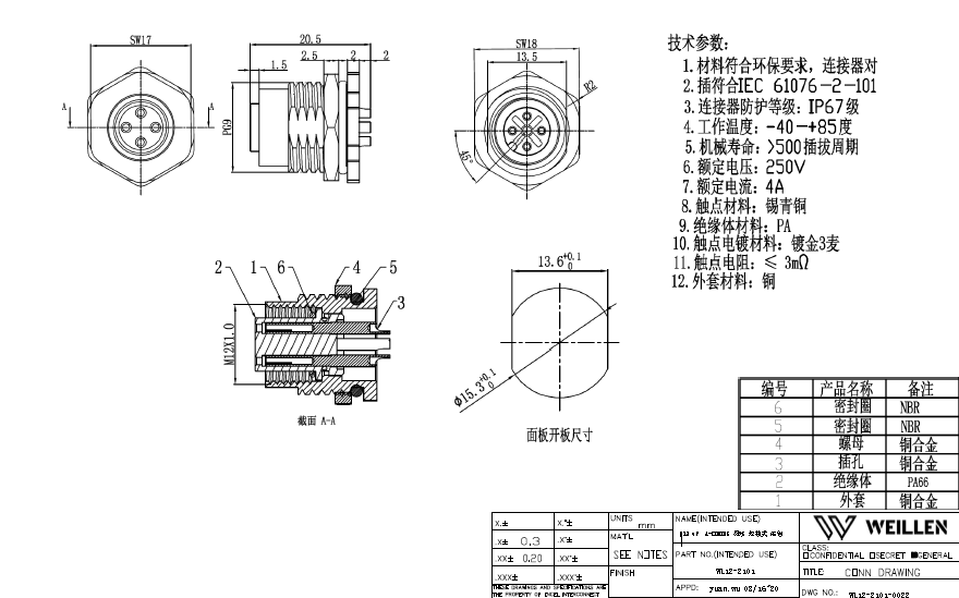 M12 4P A-CODING 母端 焊線式 前鎖數據手冊PDF下載