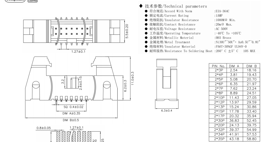牛角 2*10P 貼片式 1.27mm數據手冊PDF下載