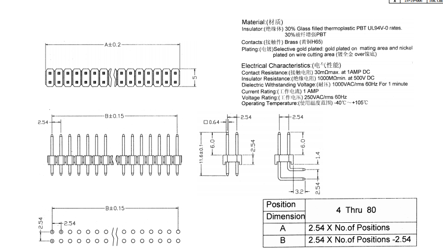 排針 單塑 2*5P 間距2.54mm 90度彎針數據手冊PDF下載