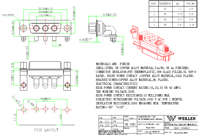 3W3 母彎插板鉚11.6支架 帶螺絲20A數據手冊PDF下載