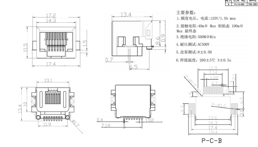 RJ45-8P8C-沉板-屏蔽-8pin–(RJ45-56-31) -F -SMD數據手冊PDF下載
