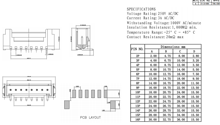 針座 1*10P 間距2.0mm YH2.0(帶扣)90度 貼片式數據手冊PDF下載