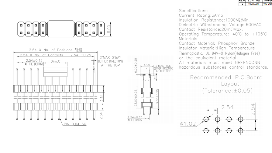 2*16P 2.54mm HEADER DUAL ROWS DIP TYPE CONNECTOR數據手冊PDF下載