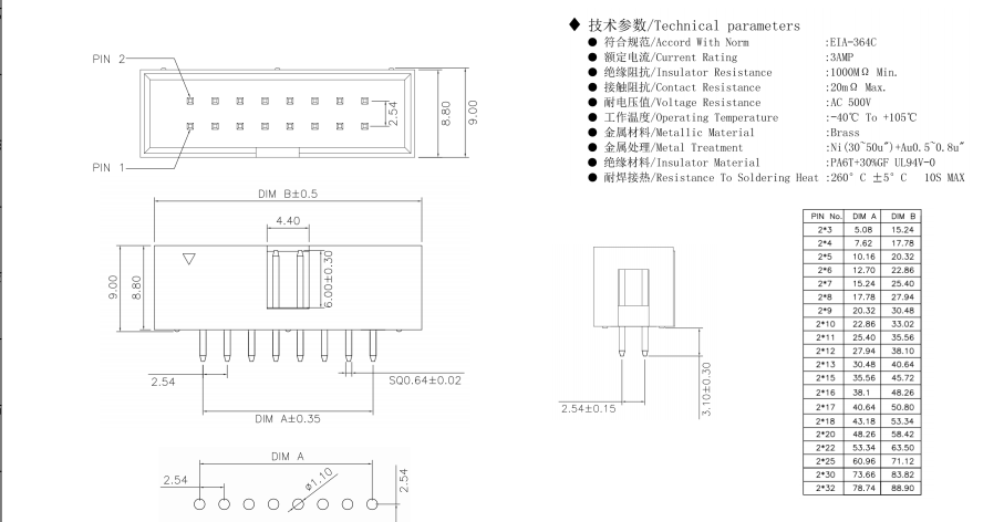 簡牛 2*7P 直插針180度 2.54mm數據手冊PDF下載