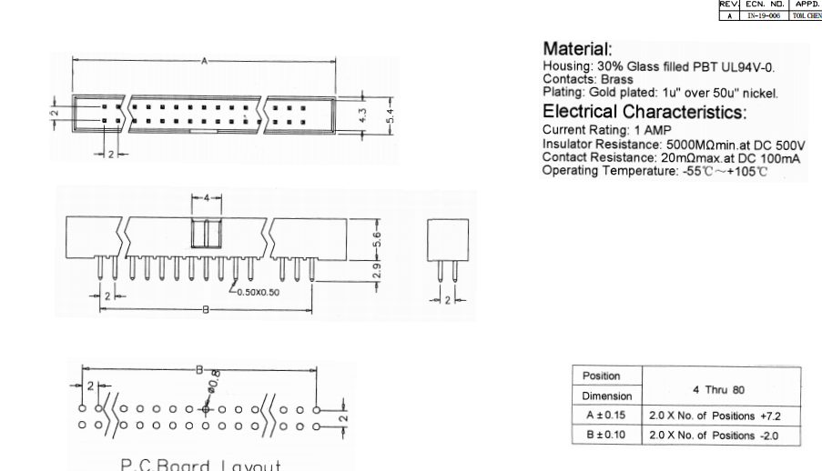 簡牛 2*10P 直插針180度 2.0mm數據手冊PDF下載