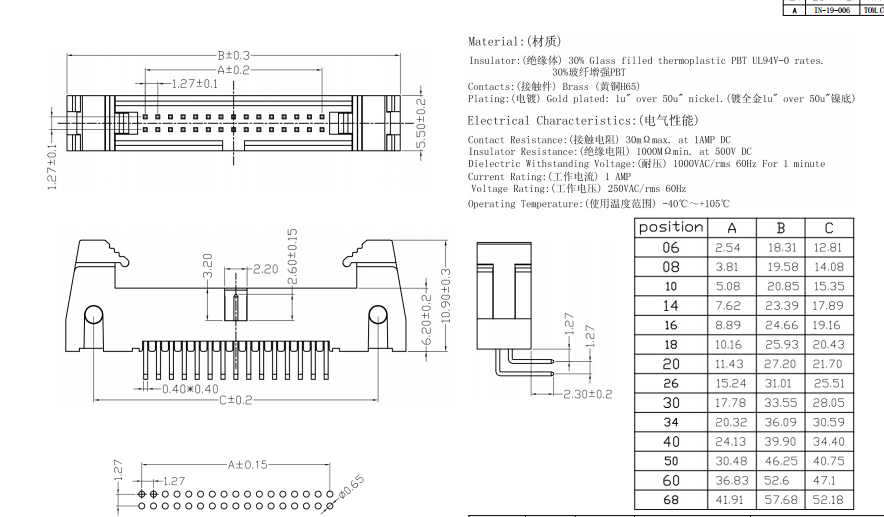 牛角 2*10P 彎針90度 1.27mm數據手冊PDF下載
