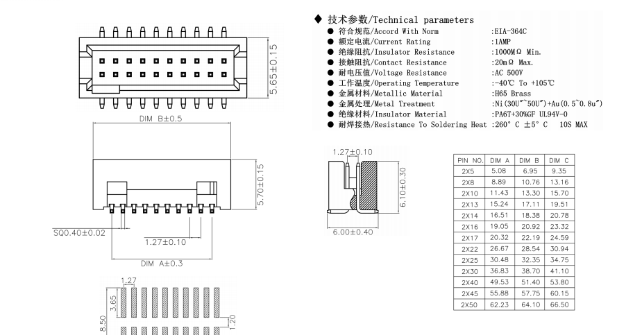 簡牛 2*40P 貼片式 1.27mm數據手冊PDF下載
