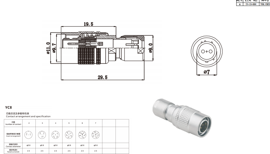 YC8 4芯 直式短公插頭數據手冊PDF下載