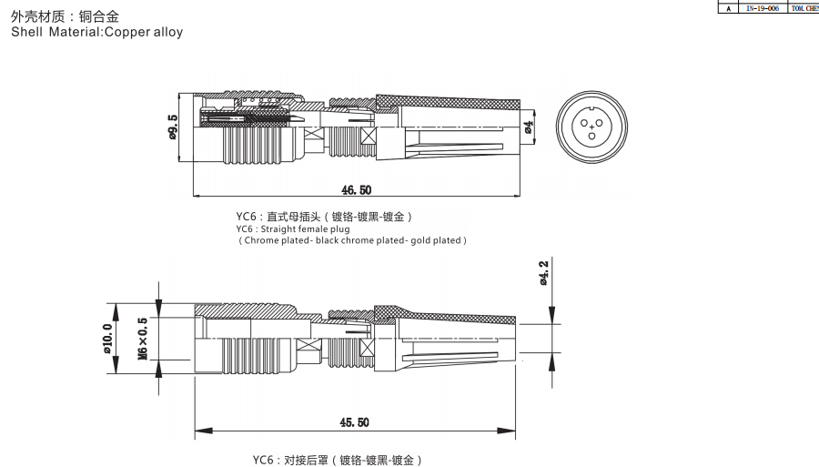 YC6 2芯 線對線 (兩端有黑膠)數據手冊PDF下載