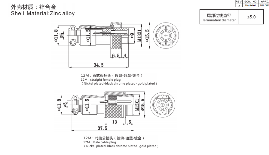 2芯 線對線 (兩端有黑膠(貴))數據手冊PDF下載