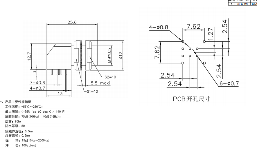 0B6芯包膠彎座數據手冊PDF下載