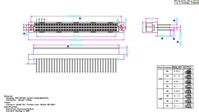 歐式系列264-AC 母180度 2.54mm 針長13mm數據手冊PDF下載