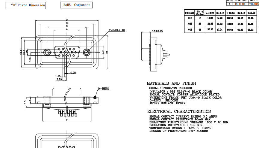 HDB 15P 母 直焊線鎖螺絲 防水系列數據手冊PDF下載