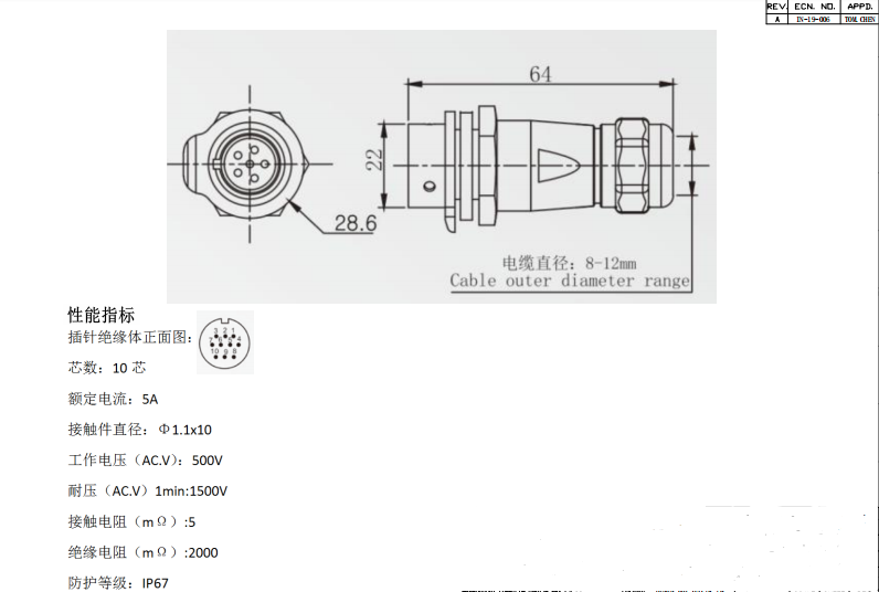 圓形連接器 10PIN 母插座數(shù)據(jù)手冊(cè)PDF下載