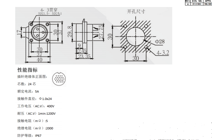圓形連接器 24PIN 母插座數據手冊PDF下載