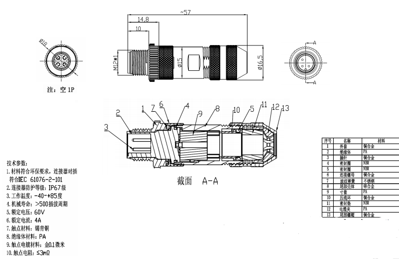 M12 3P A-CODING 公端壓接型組裝式連接器數據手冊PDF下載